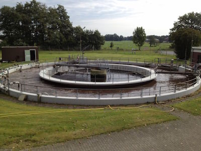 Das biologisch gereinigte Abwasser fließt durch Düker- und Sinkrohre in die Nachklärung.