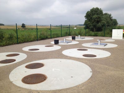 Die hier installierten Belüfter erzeugen eine turbulente Strömung, durch die die erforderliche Durchmischung des belebten Schlammes mit dem Abwasser bei gleichzeitiger Sauerstoffversorgung gewährleistet ist.